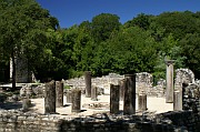 Starting at the very south of the country, the ruined Roman city of Butrint is located between the Greek border and the popular resort of Saranda. The ruins themselves are impressive, and derive added appeal from their location on a peninsula covered with lush woodland. The surrounding hills, marshes, and lagoons form the scenic Butrint National Park, which is well worth exploring. The National Park has designed several walking trails starting from the ruins (see the links page for more details). Butrint is the only place in Albania where this kind of information is so readily available, so take advantage of it. Butrint can be visited on excursions from Corfu, so many people get their first (rather rushed) taste of Albania here.
