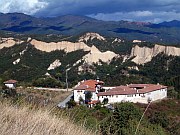 Rozhen Monastery is just a few kilometres from Melnik. It is plainer than Rila or Bachkovo but worth a visit if you are in the area. There is an intermittently marked path between Melnik and the monastery - follow the valley from the northwest of the town. The path leads over a ridge with wonderful views of sandstone ridges, the Pirin to the north, the mountains of Greece to the south, and the monastery itself just below. When I visited in late 2003, the last section of path leading downill to the monastery had been partly eroded and was quite difficult to negotiate. It's also possible to walk along the road - there is hardly any traffic.