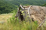 One reason people come to Gotse Delchev is to visit a number of nearby highland villages. Delchevo is only a short distance to the west, in the forested Pirin foothills, but feels thoroughly remote. Delchevo is not to be confused with either Gotse Delchev or the town of Delchevo just across the border in Macedonia (all three were named after the same revolutionary hero). It is a cluster of stone houses huddled at the top of a steep valley. A footpath (probably a mule trail) from Gotse cuts straight up the valley, whereas the road is forced into a convoluted detour to gain the required height. The village itself is literally the end of the road, although a marked path leads further west into the mountains. Delchevo reminded me of some of the villages in Greece's Pelion Peninsula - but instead of sea views there are panoramas of the Mesta Valley, and the Rhodope Mountains on the other side.