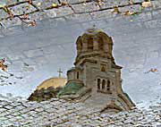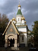 Sofia doesn't have many old buildings, but you can find a few old churches near the western end of the Largo. Walking north from Sv. Nedelya, the most prominent of the churches, bring you to the former TSUM department store. It's now a fancy shopping mall whose doormen wear uniforms even more absurd than those of the Presidential Guard. The Banya Bashi Mosque and the Synagogue are not far away. Thus this small area contains the temples of four great faiths: Christianity, Islam, Judaism and Consumerism.