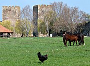Smederevo, on the Danube bank a short distance downriver from Belgrade, is the site of Serbia's largest fortress. The 1.5 circuit of the outer walls, including 25 towers, held out against Turkish attacks for many years, but the citadel's eventual surrender in 1459 marked the definitive end of the mediaeval Serbian state. The castle was badly damaged in World War Two, but is still an impressive sight. When I visited, I found donkeys, chickens, and schoolchildren roaming the vast open space enclosed by the walls, giving the citadel a rather homely appeal.