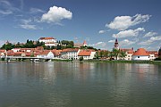 Ptuj is one of the main attractions in the less visited eastern half of Slovenia. The town is especially impressive seen from the other side of the wide Drava River. Like so many Slovenian towns it consists of a cluster of red-roofed houses overlooked by a castle on a hill. Ptuj's castle is larger than most - you can see it from miles away across the plain. As well as being the place to go for views of the town, the castle contains a museum; a little shop serves drinks in the triple-arcaded courtyard.